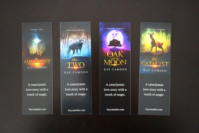 I just got a shipment of bookmarks for THE CATALYST. If you’d like a bookmark for any book or for all four, contact me and I’ll mail you one (or more).